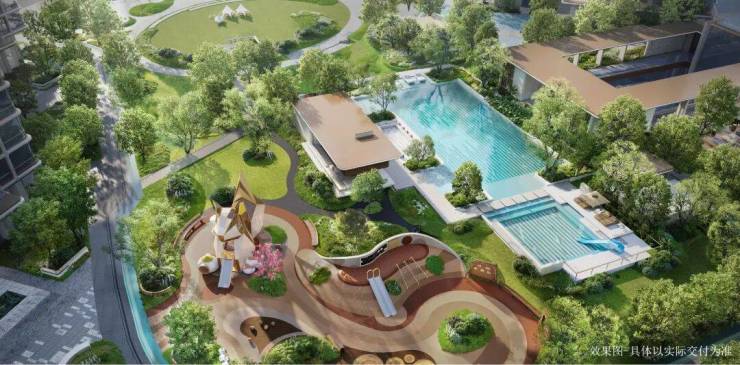 约2700平定制化会所,泳池区、健身区、瑜伽区、咖啡区、亲子乐园等功能,甚至还有私宴区,对标豪宅品质。