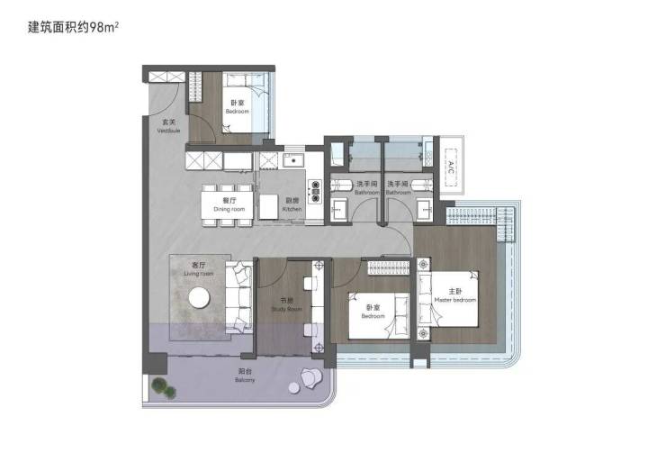 98㎡创意四房两卫,LDKB相融,宽敞餐客空间,承载家人幸福时光