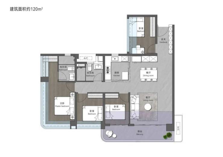115㎡创意四房两卫,搭配大面积入户花园,归家即享井然有序的从容