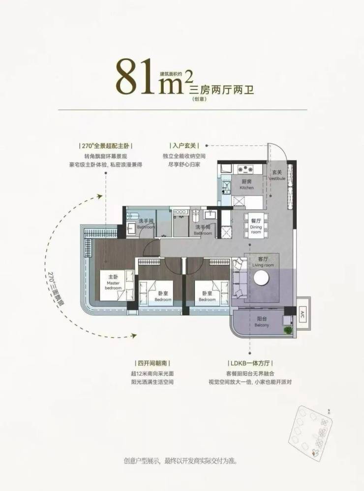 131㎡创意四房两厅,环幕双景阳台,270°环幕视野