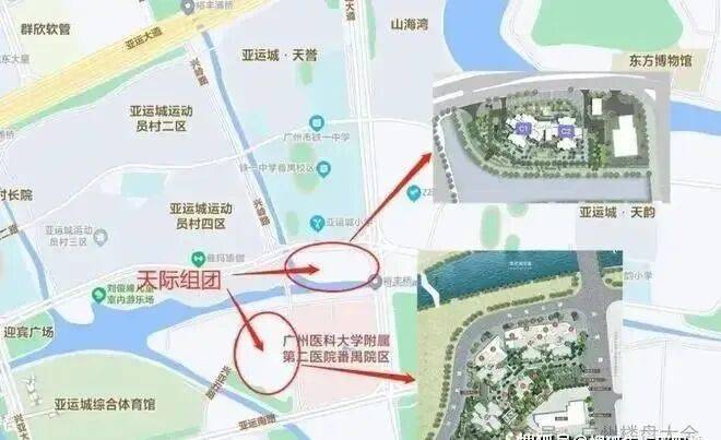 医疗配套:该项目内设有三甲医院广医二院番禺院区,并规划有广州中医药大学附属中西结合医院。此外,还有社区卫生服务站(天誉已启用)和3000平方米的社区卫生服务中心(天珑在建),可为业主提供日常小问题的医疗服务。