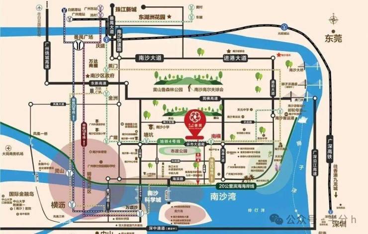 项目距离地铁4号线南横站仅约200米,步行可达,周边直线3km范围内还有塘坑、南沙客运港2个地铁站,轨道交通发达[superscript:4];周边直线1km内有10个公交站,公共交通便捷;紧邻环市大道南,可快速衔接莞佛高速、广澳高速等交通干线,通达广州中心城区及东莞、佛山等地,通勤与跨城出行都十分方便[superscript:4]。