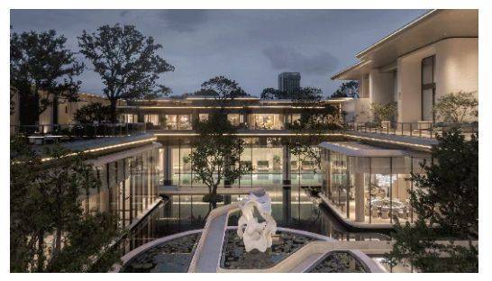 项目兼顾生态休闲与人文娱乐,打造“社区景观+城市生态+文体场馆”的全场景文体生活圈,平衡高端居住与休闲放松需求。社区内部依托“一轴两环三园”景观体系,打造沉浸式园林体验,搭配400米夜光跑道、儿童游乐区、社交草坪等,适配家庭休闲、邻里社交与日常健身[1]。