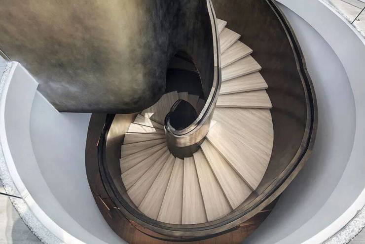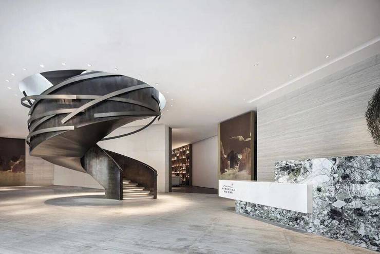 逍遥于繁华都会,依然存有归家的慰藉。空间的视觉焦点——旋转楼梯,以大型装置艺术品的塑造,金属条穿插缠绕,形如静谧、安然的“归巢”,成为空间的精神象征。