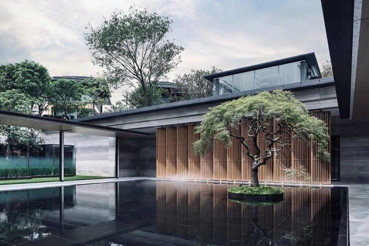 云影入水,水溢养木,木葱固本,这是人与树、心与境的互相倚靠,也是古与今、记忆与现实的互为存证。CCD用现代手法将东方园林的经典元素——门槛、回廊、中心观景及水景,构建回家的仪式感,让每一位归家人途经长廊进入回家大堂,开啓静谧雅居时光。