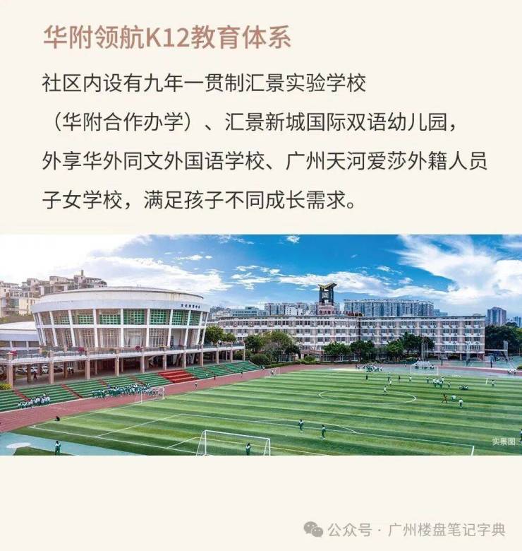 对于有孩子的家庭,教育资源可是头等大事。保利汇景台在这方面的配置相当不错。项目专门配建了一所 9 班幼儿园,还有侨鑫汇景新城幼儿园。中小学方面,有涵盖小学到初中的汇景实验学校,而且在 2021 年,这所学校就和华南师范大学附属中学签约合作办学了。华附在广东教育界的实力有目共睹,有了它的加持,学校的教学质量更有保障。