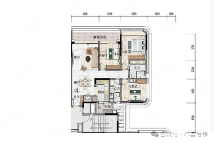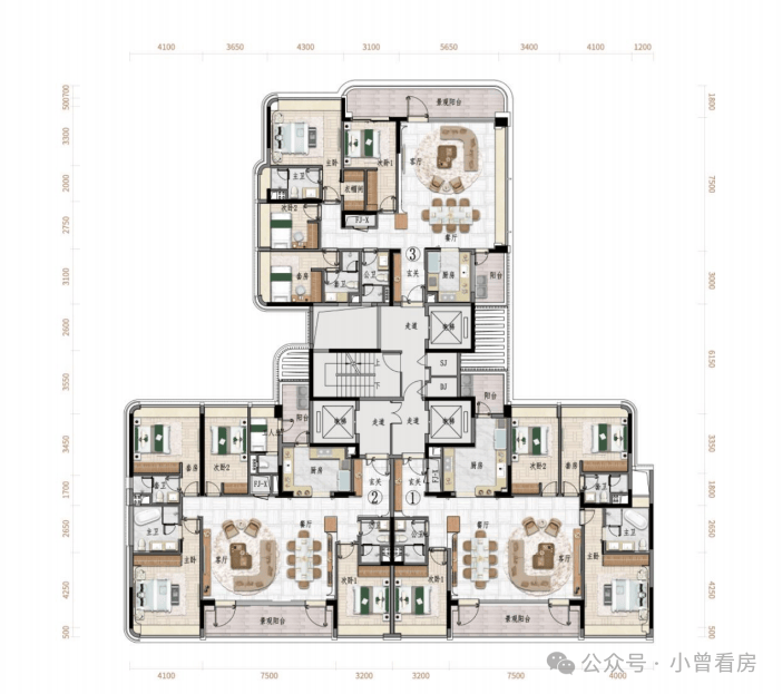 290㎡的五房堪称 “豪华” 配置,大阳台可以摆上躺椅,晒晒太阳,享受悠闲时光。主卧就像个小套房,里面有书房还有衣帽间,在家办公也很有仪式感。
