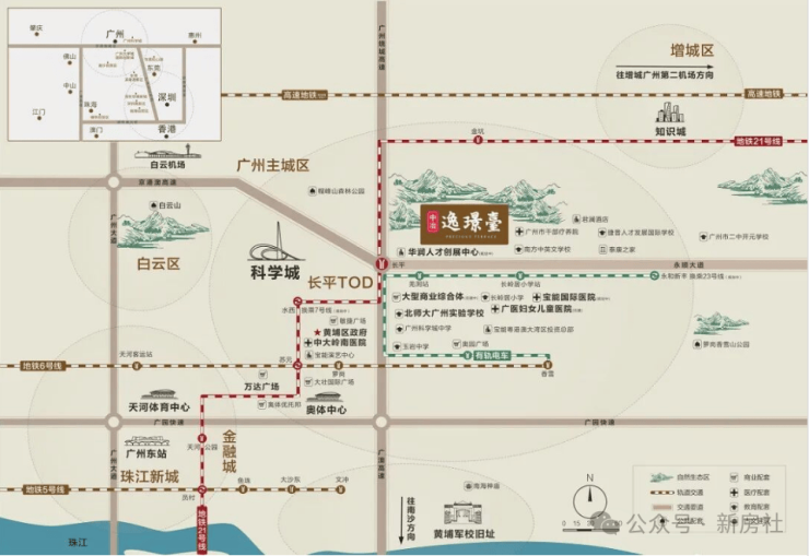 1,项目三面环山,处于长岭居板块核心位置,依山傍水,生态环境优美,是广州市政府重点发展的生态宜居示范区。周边紧邻黄埔科学城与中新知识城,未来发展前景广阔。