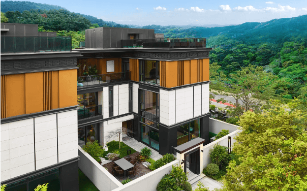 自然山景是广州主城难得一求的稀贵资源,中冶·逸璟台所享有的“三山环抱”则是稀贵中的掐尖,三山环抱间,形成一天然腹地,2.0的超低容积率,生态上有绝对的优势。中式院落群的恢弘与礼制铺陈其上,极富东方美学的意境和婉约,创造出一种让人惊叹叫绝的美与震撼。夏日树影丛丛,开阔的宅间庭院有精进的审美和功能,正要拾阶而下,山语陆拾的建筑就映入眼帘。