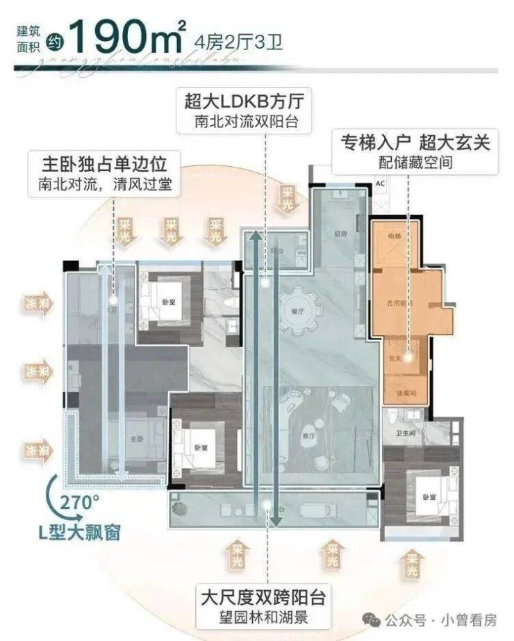 户型面积:140㎡/190㎡四房,250㎡4+1房