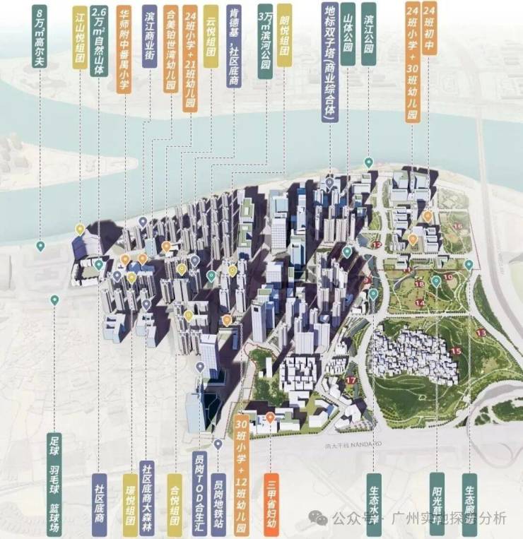 项目临近万博板块,位于江山高尔夫俱乐部东侧,项目地处广州城市中轴&南大干线经济带双中轴交汇点。