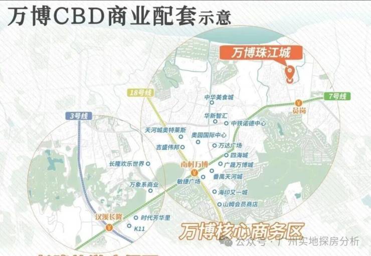 珠江万博城在售的A2组团靠近地铁7号线,步行约550米就可以到7号线的员岗地铁站。1站可到7号线+18号线的交汇站点--南村万博站、4站到琶洲、5站到珠江新城。