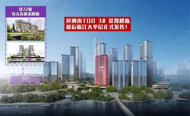 琶洲南TOD打造全国首个CBD+TOD(交通导向开发)+POD(公园导向开发)的超高端综合体,一期曾卖出173个亿,登上全国单盘签约榜首。当前项目在售二期总建面约42万平,主推约176-325平大平层,在售均价约14万/平。