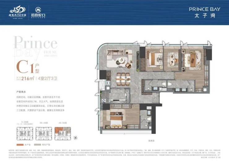 大尺度空间 纵享环幕视野大平面大尺度定位,层高约3.6米,横厅设计确保最大化观景面全户型纵享环幕视野。项目打造主力建面约215-415㎡纯粹品质公寓共191席,顶层为建面约1270㎡公寓产品。