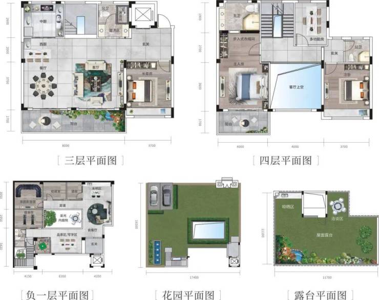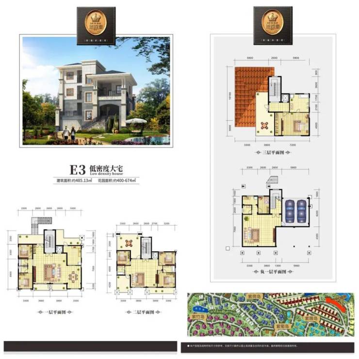A1下叠 建筑面积约192㎡、花园约297-338㎡、地下室约119㎡