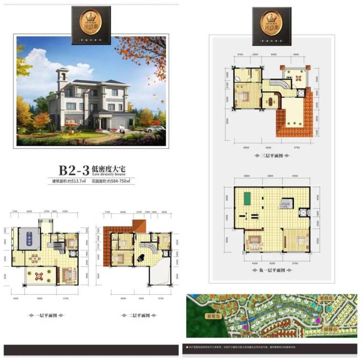 B2上叠 建筑面积约172㎡、花园约160-294㎡、地下室约153㎡