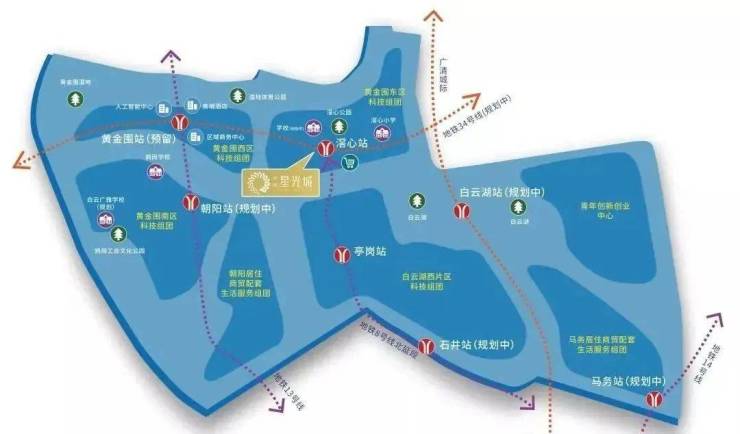 作为中建三局广州首发项目,中建星光城立足广州28平方公里的白云湖数字科技城,被中关村信息谷、哈工大大数据集团、双碳产业园、海特云谷产业园等74宗科创项目簇拥,一席揽尽1000亿科技城邦发展红利。白云湖数字科技城作为科技创新轴的一个环节,是白云未来发展的“重头戏“。