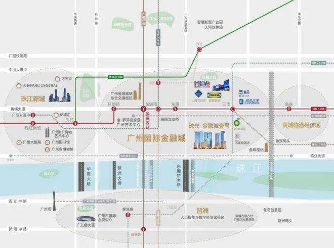 珠光·金融城壹号落子广州国际金融城东部门户要塞,西临珠江新城,北接天河智慧城,南为琶洲商圈,东接黄埔临港经济圈。