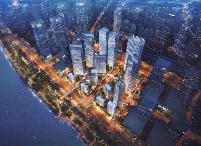 项目一线临江,搭配现代商务全玻璃幕墙,南高北低,最大程度展现一线江景。