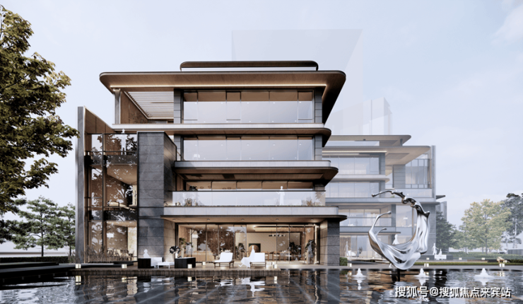 塔楼立面采用横向弧线金属设计,深灰色纵向装饰铝板强调出建筑的垂直线条以及体量感,整体勾勒出现代精工、新锐典雅的气质。大面积通透的玻璃使整个建筑轻盈而优雅,创造良好的景观视野。顶部以简单的手法,为建筑创造了丰富的形体变化,构建出沿河的标杆形象。