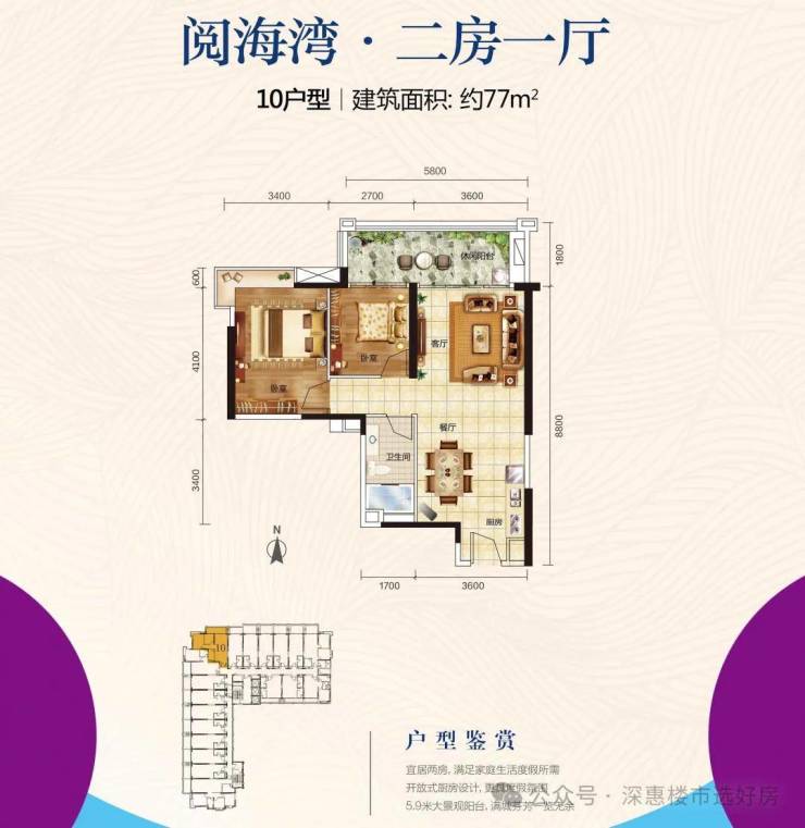 二房:开放式厨房设计,5.9米大景观阳台