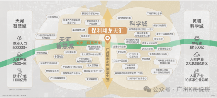 保利翔龙天汇作为科学城和智慧城交汇处,与天河一路之隔,优越的区位选址,让项目可同享天河智慧城与科学城双城的发展利好。