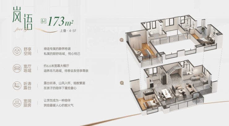 相对于纯粹的叠墅,翔龙天汇做出的是上叠+平层+下叠的组合,还是市区较为稀缺的山景叠墅,主打高赠送、低密度。