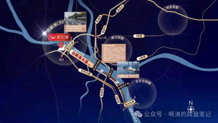 未来通过白鹅潭大道约4公里直达白鹅潭CBD腹地