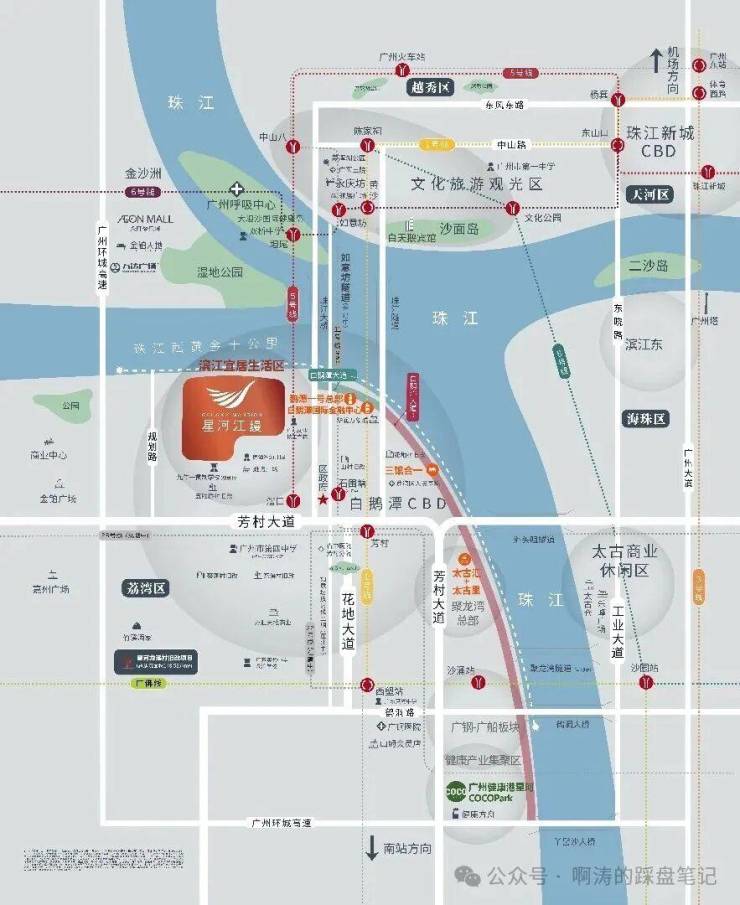 从项目出发,通过芳村大道10分钟直抵荔湾白鹅潭CBD核心区域