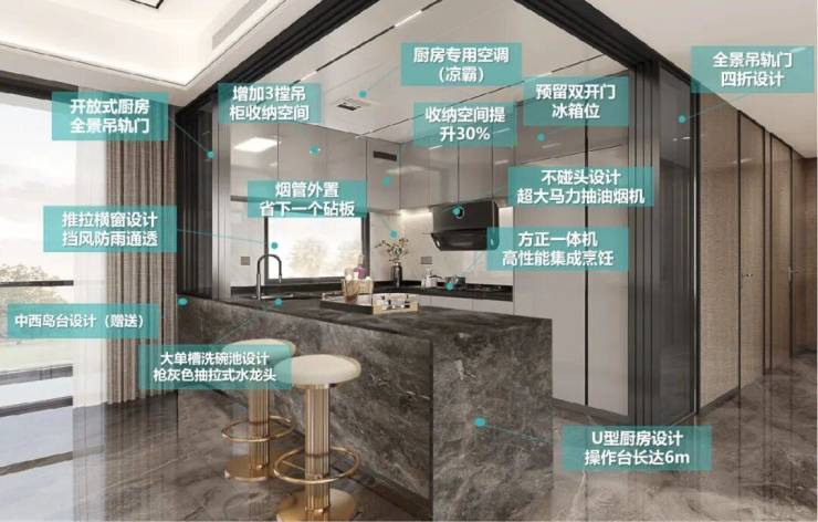 全户型赠送岛台,面积不变实用率更高超7.6米南向阳台+采光面超14米全屋采光