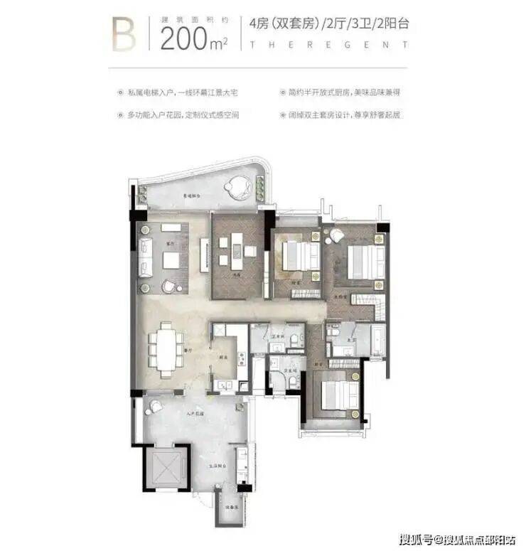 产品亮点:私家电梯入户、有天有地、部分楼层三面采光、约3.4米层高、动静分区南北对流、U型阳台360°观景、约6.8米挑空餐客厅、中西双厨、四套房设计、部分房间带阳台设计