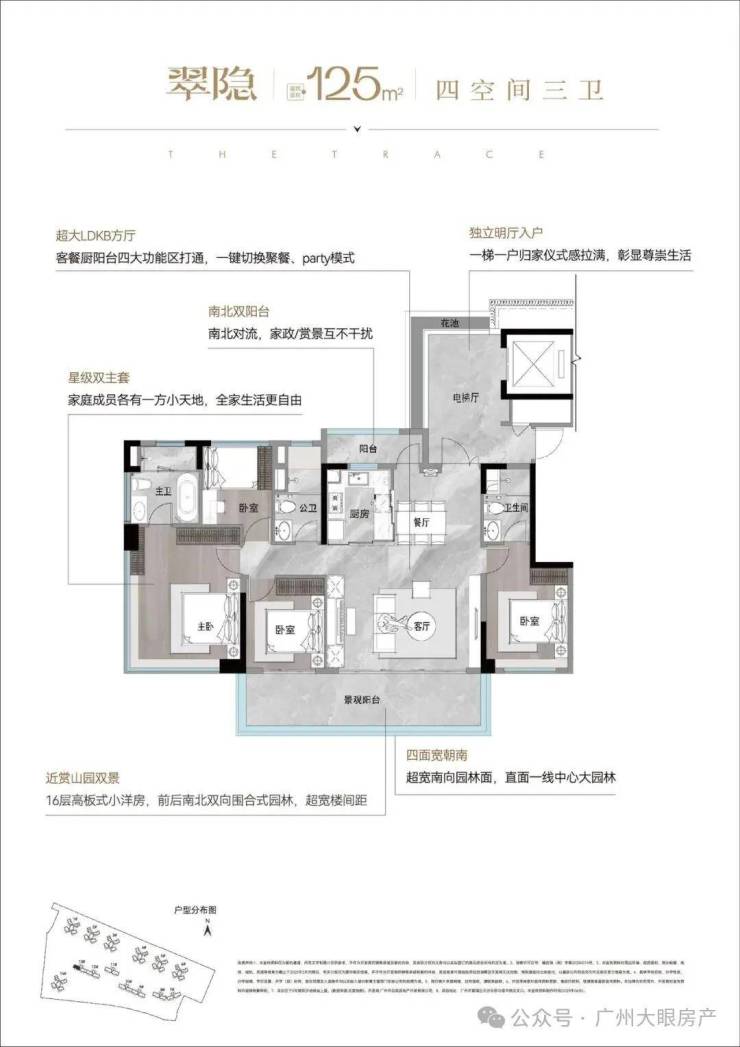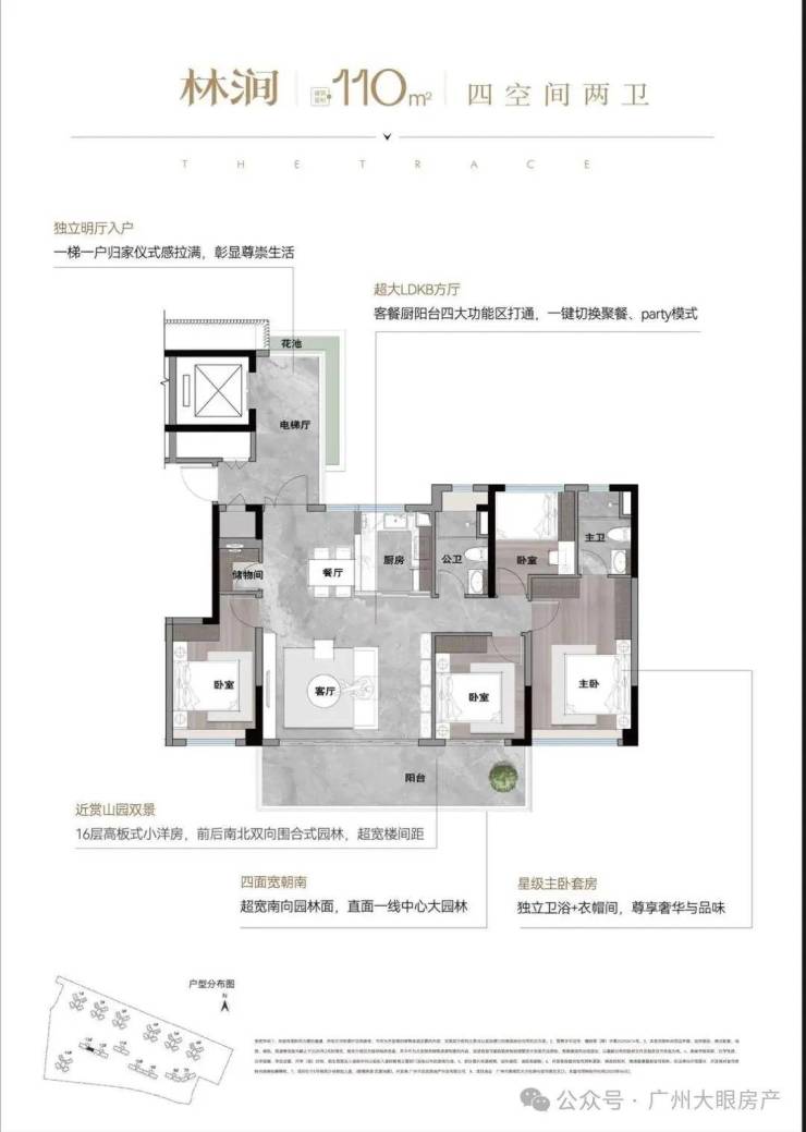 独梯入户、四面宽朝南、南北对流超大方厅...这些大平层级别配置,通通能够享有。