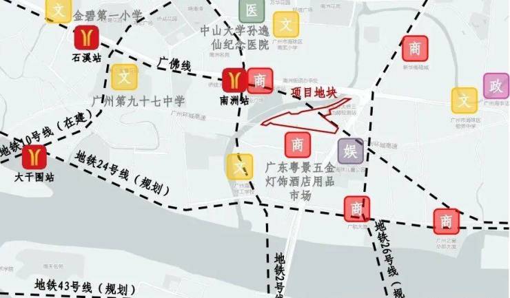 项目距离2号线和广佛线交汇的南洲站直线距离仅约500米,目前北濠涌规划引桥已开建,计划于今年内建成并开通,届时项目通达南洲地铁站将更为便捷。
