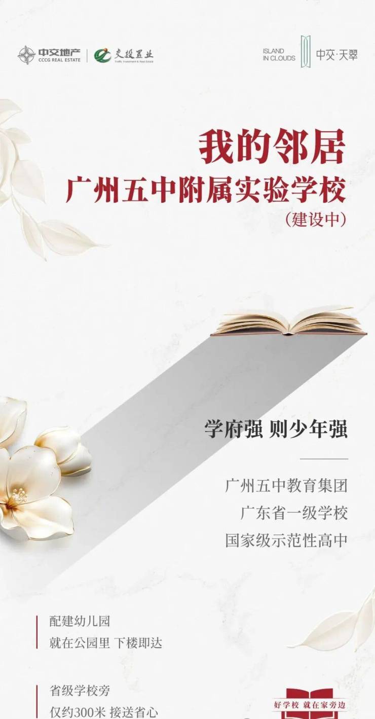 项目会配建一所9班幼儿园,现在中交天翠官宣,可就近入读广州五中附属实验学校(建设中)。