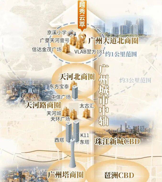 云悦二期算是一个双地铁项目。一来,家门口就是18号线京溪路站。未来业主,下楼乘坐18号线,就能一线直达琶洲(磨碟沙站)、珠江新城(冼村站)、天河北(广州东站),万博(南村万博站),根本不需要换乘。而步行约800-900米,就能到达3号线梅花园站。同样,乘坐地铁无需换乘,便能抵达体育西路、珠江新城。