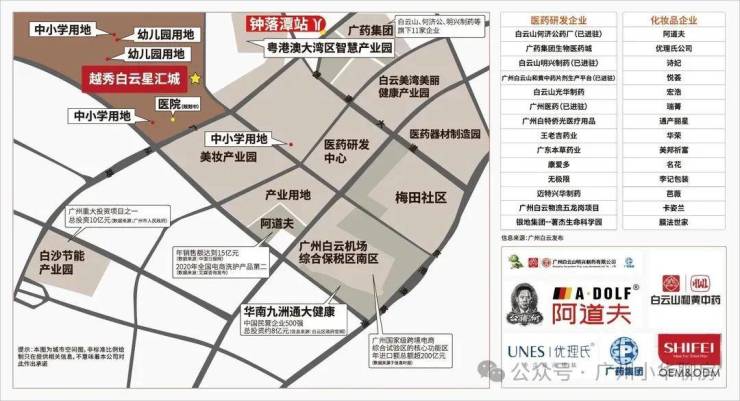投资200亿,规模约等于22个广钢新城,已有何济公、明兴制、广药集团、和黄中药等29家知名健康产业企业入驻,健康城整体包含医药研制、职业教育、健康服务和健康养生四大功能片区;