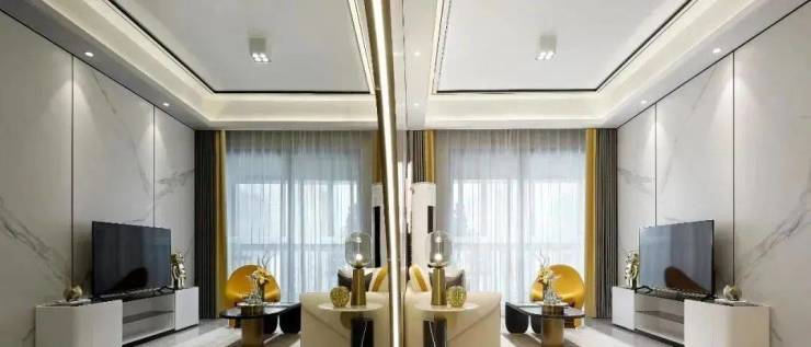 客厅开间约为6米,进深约3.3 米,层高大约3米,整体会显得宽敞大气,而且横厅设计完全无遮挡,可以一览景观。