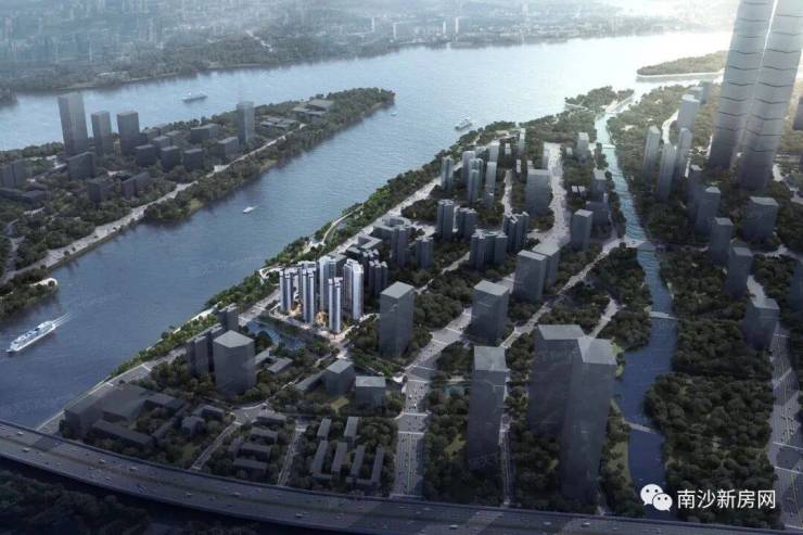 美的江上沄启,位于南沙区明珠湾起步区横沥岛尖,和旭辉曜玥湾、湾区金融岛并称横沥三子。