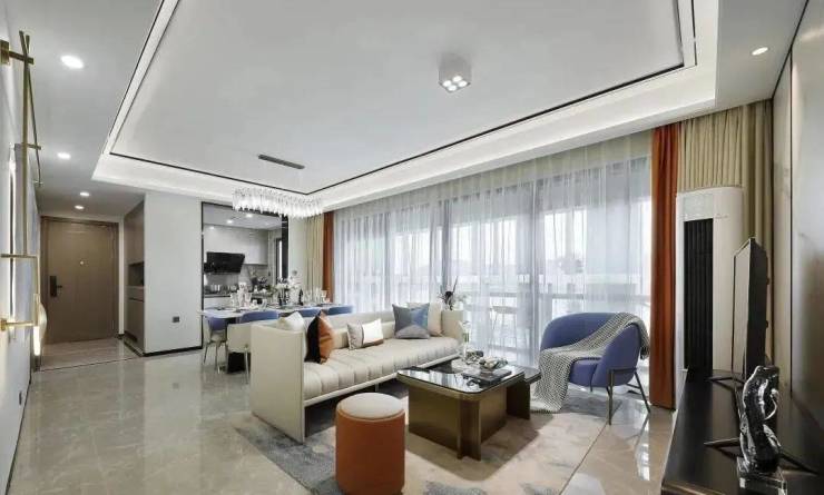 118㎡样板间只开放了B户型,相较于建面约98㎡2+1房户型,建面约118㎡3+1房客餐厅的空间感有所提高,开间大,光线足。