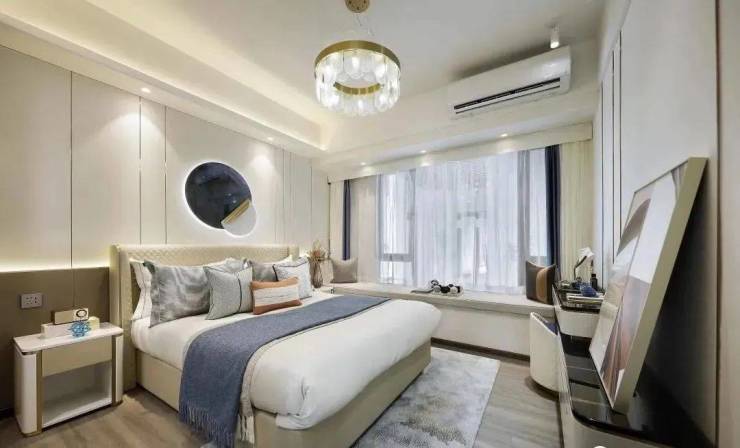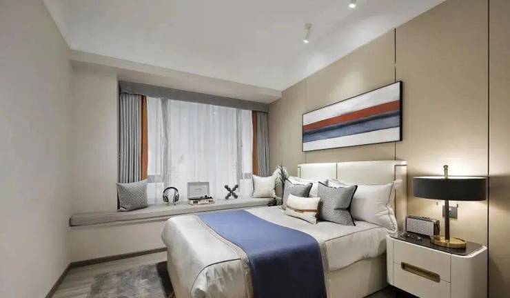 再来看看卧室。主卧有一个大飘窗,视野效果佳的同时还能灵活备置。