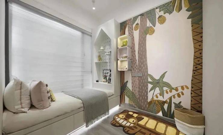 次卧也可以充分利用飘窗台的空间,有效打造舒适的居家布局,适合给家里的长辈一个舒适的生活空间,既亲近小孩又不压抑。