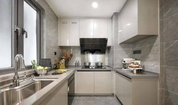 难得的是,厨房还能做到U型设计,而且开间进深都够宽阔,可以同时容纳2-3人,操作性强。
