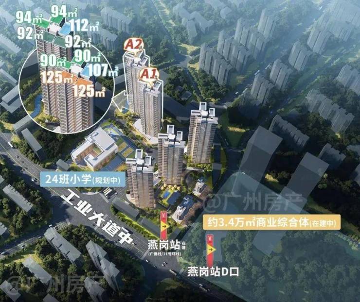 交通方面,更是突出。项目直距约150米,是广佛线和11号线(建设中)交汇的燕岗站。