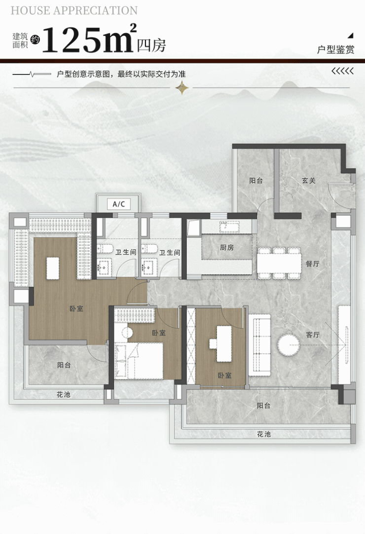 追求更进一步的奢阔空间,还有建面约125㎡的四房。