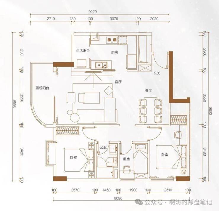 建面约93㎡园景户型,看中庭中央园林,阳台约180米宽楼距阔景园林