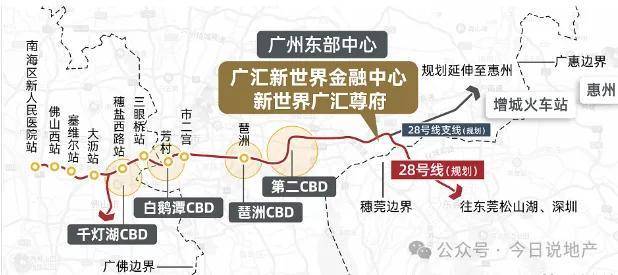 广州28号线则联结广州、深圳、东莞、佛山的中心区域,被称为“湾区大动脉”。未来从多座城市市中心,都可以一线直达广州东部CBD。