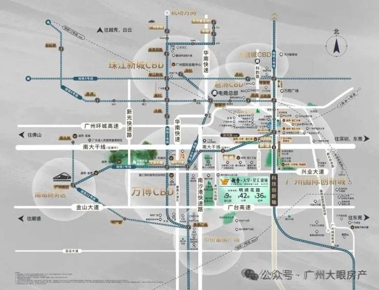 此外,自驾车辆可通过南大干线直入新化快速路,无需经过红绿灯即可直达琶洲、金融城等地,为出行提供更为便捷、高效的路线