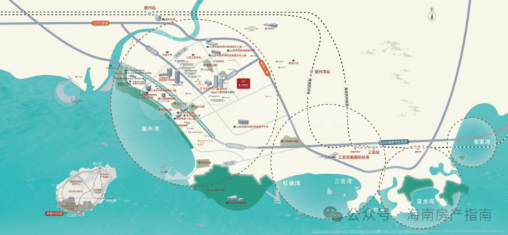 崖州高铁站:直线距离约6km