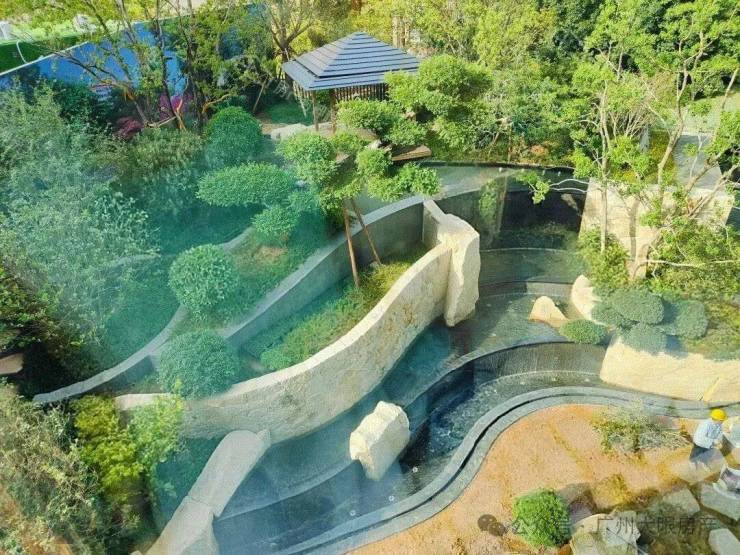 内部约3800方园林,由日本设计师小林政彦操刀,有日式凉亭、流水瀑布、屋顶花园等元素,景观不错,并且是大手笔打造的,光罗汉松就有4、5棵。