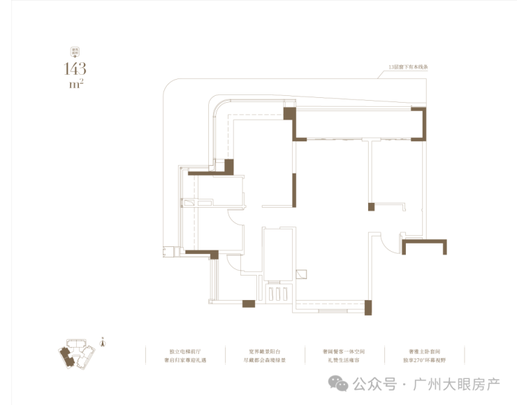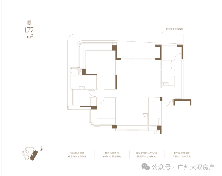 其中,约133㎡北侧看白云山,约143㎡西南向,约177㎡东南向。